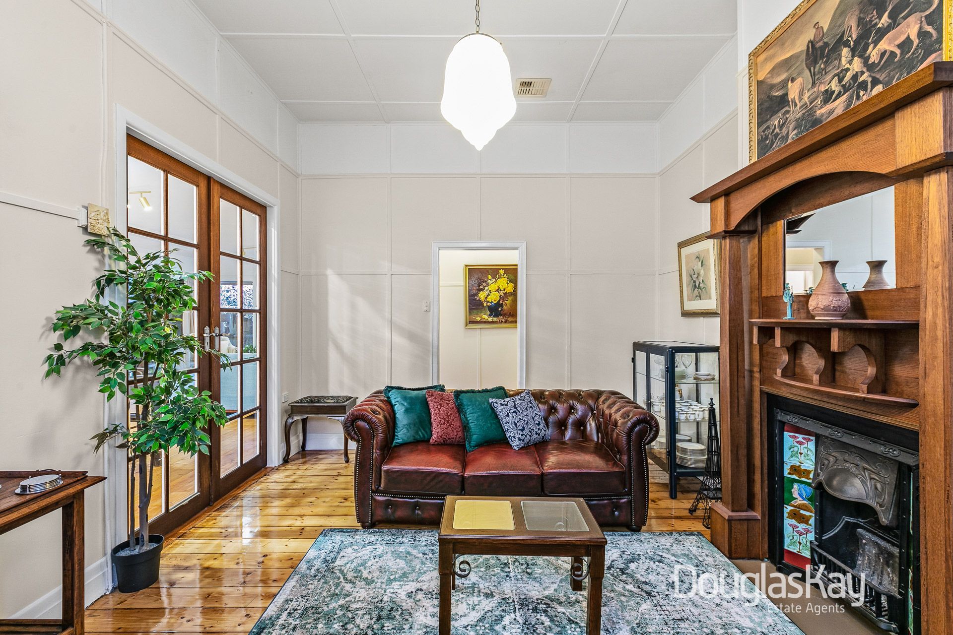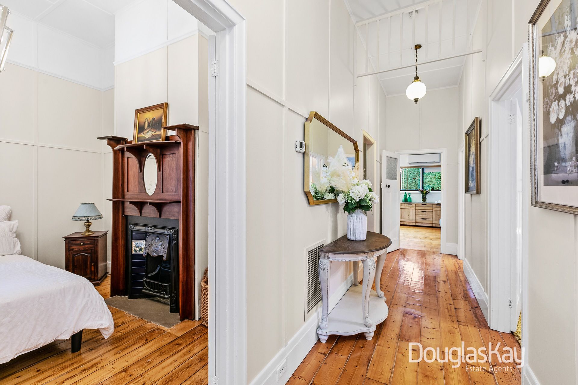 _The Classic: Original restored working fireplaces, corner return porch, lofty 12 foot high ceilings, stunning batten plaster, high architraves, picture rails, patina accented switches, french doors and restored Baltic Pine flooring.