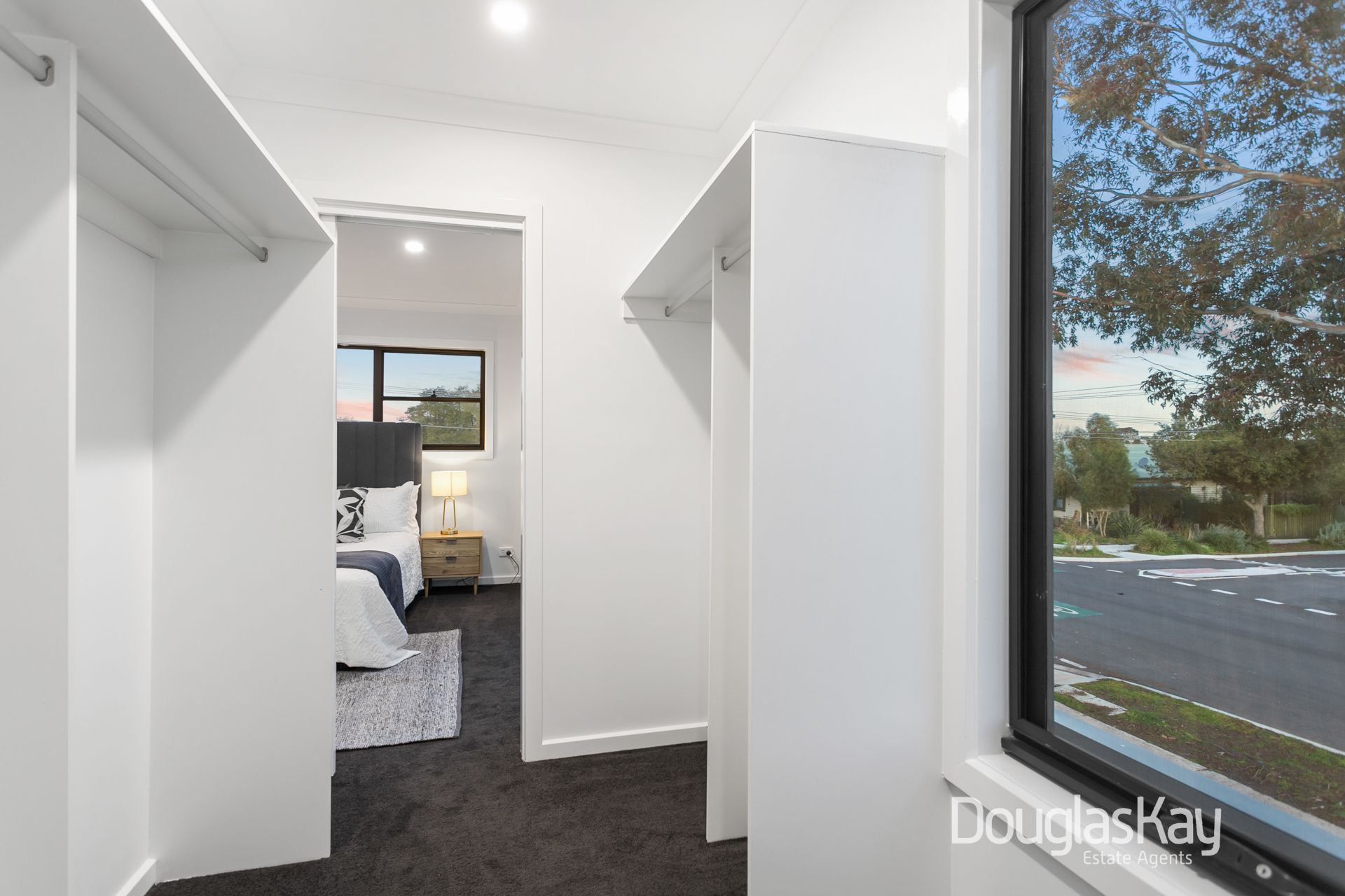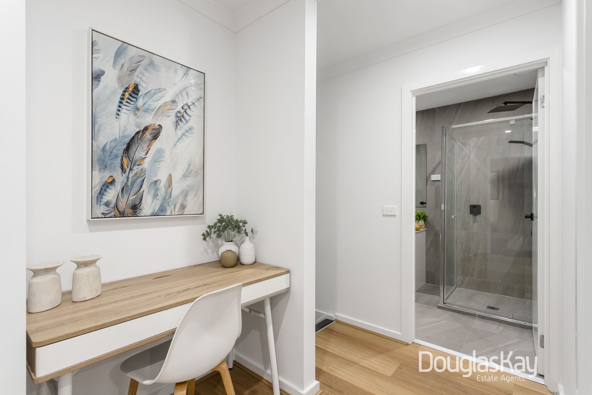 Upstairs, discover a second nook area and accommodations offering three generous bedrooms. Two bedrooms come with built-in robes, while the master suite features a walk-in robe and a private luxurious ensuite. A well-appointed, sleek central bathroom with a full-sized bathtub serves the additional bedrooms, along with a separate WC.