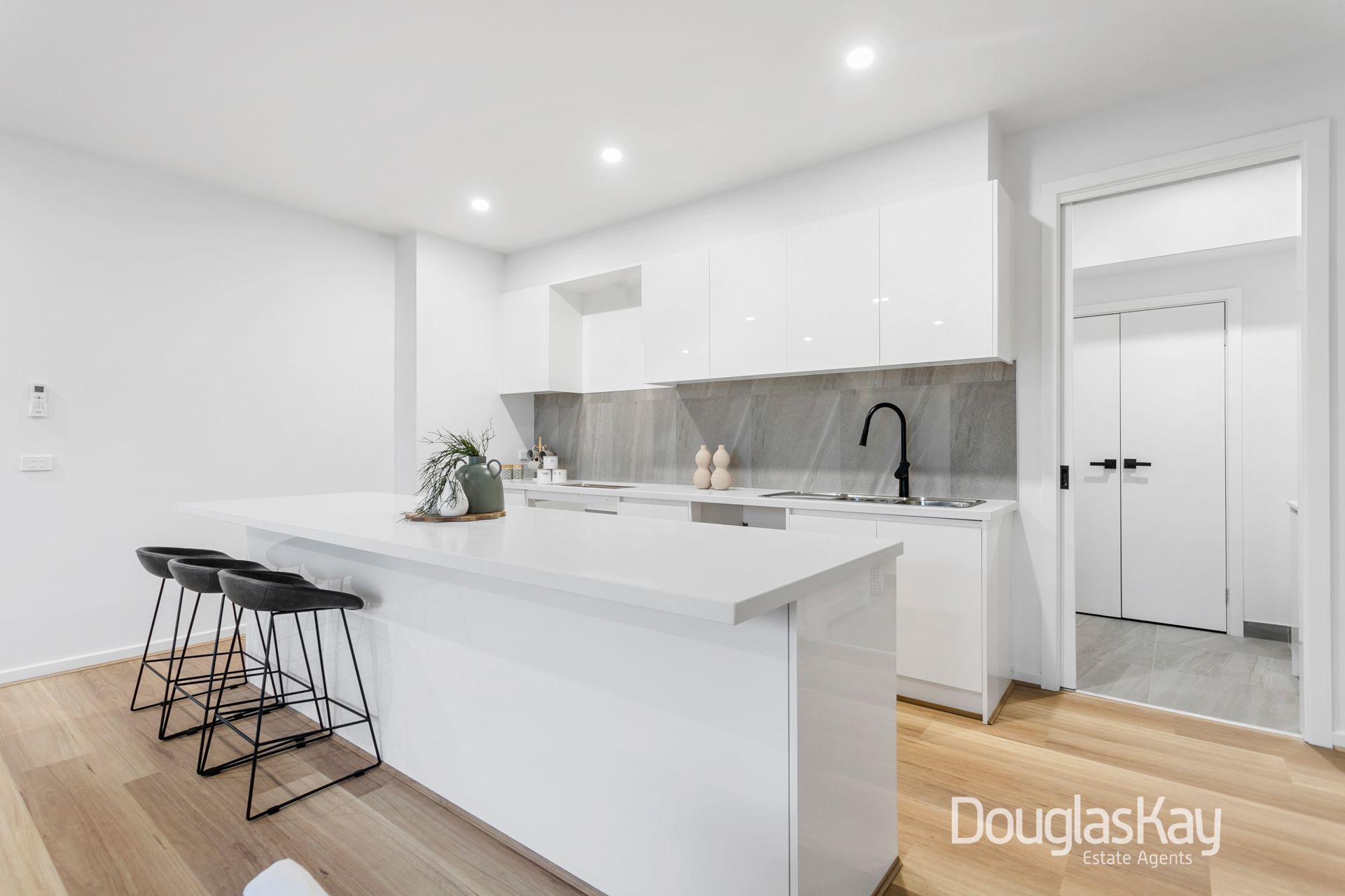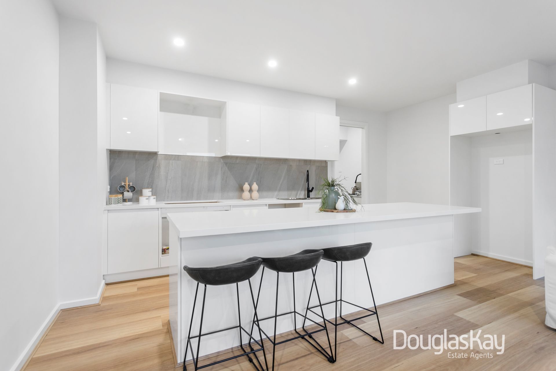 The modern kitchen is a chef's delight, boasting a stainless steel 900mm gas cooktop and oven, dishwasher, a substantial 3-meter stone breakfast bar, stone countertops, and ample storage space. Additionally, there's a charming nook ideal for a reading corner and a convenient powder room.