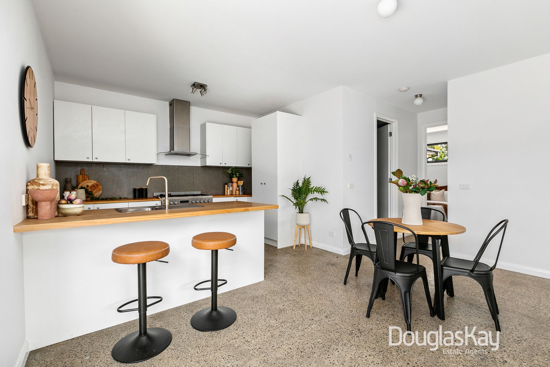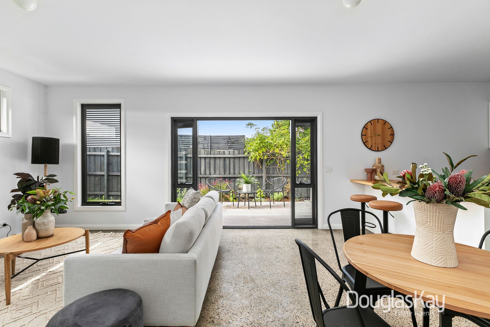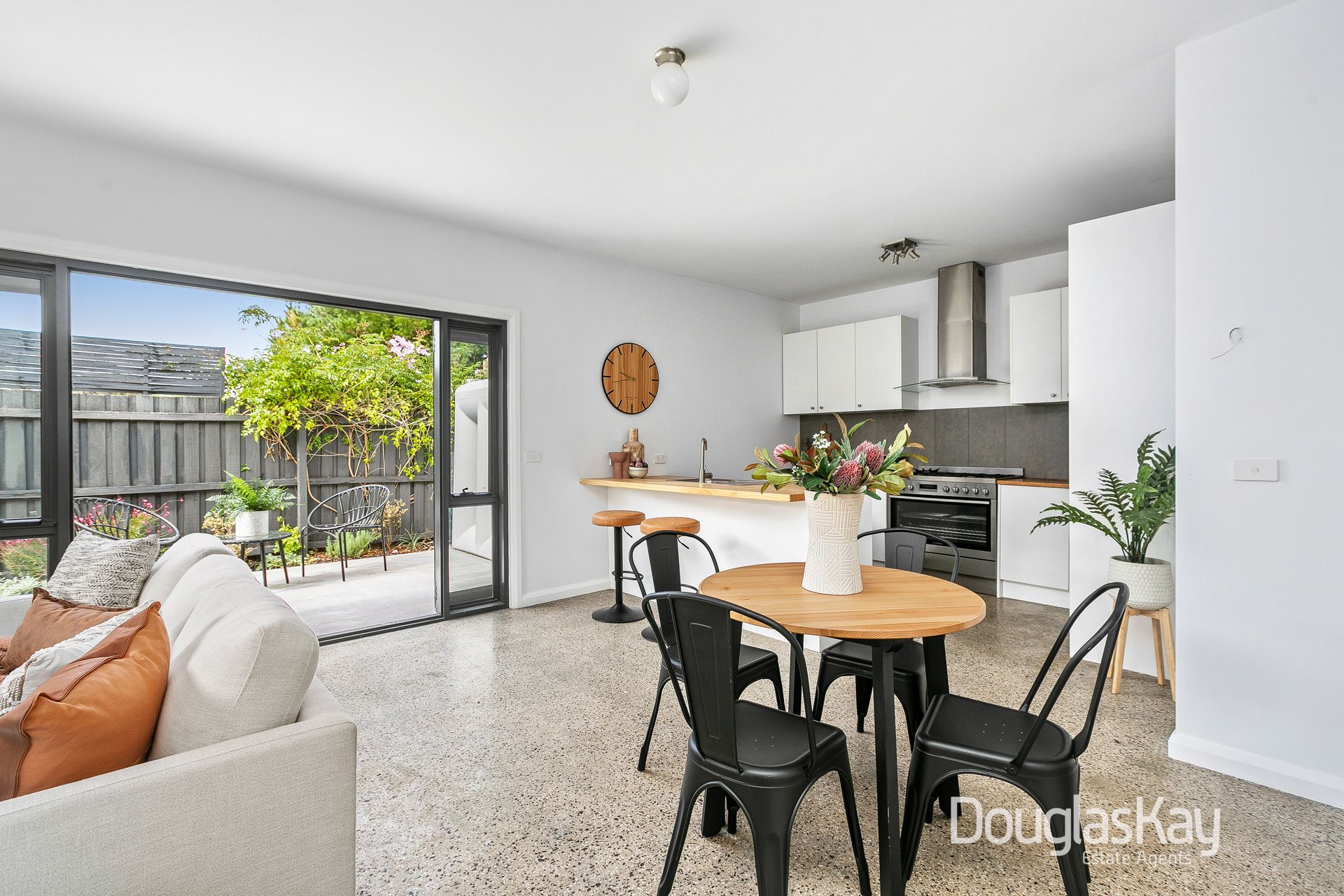 Impeccable presentation from beginning to end featuring polished aggregate concrete flooring, the home's illuminated interior comprises two double bedrooms with built in robes serviced by a spotless central bathroom room with stone-top vanity and laundry.