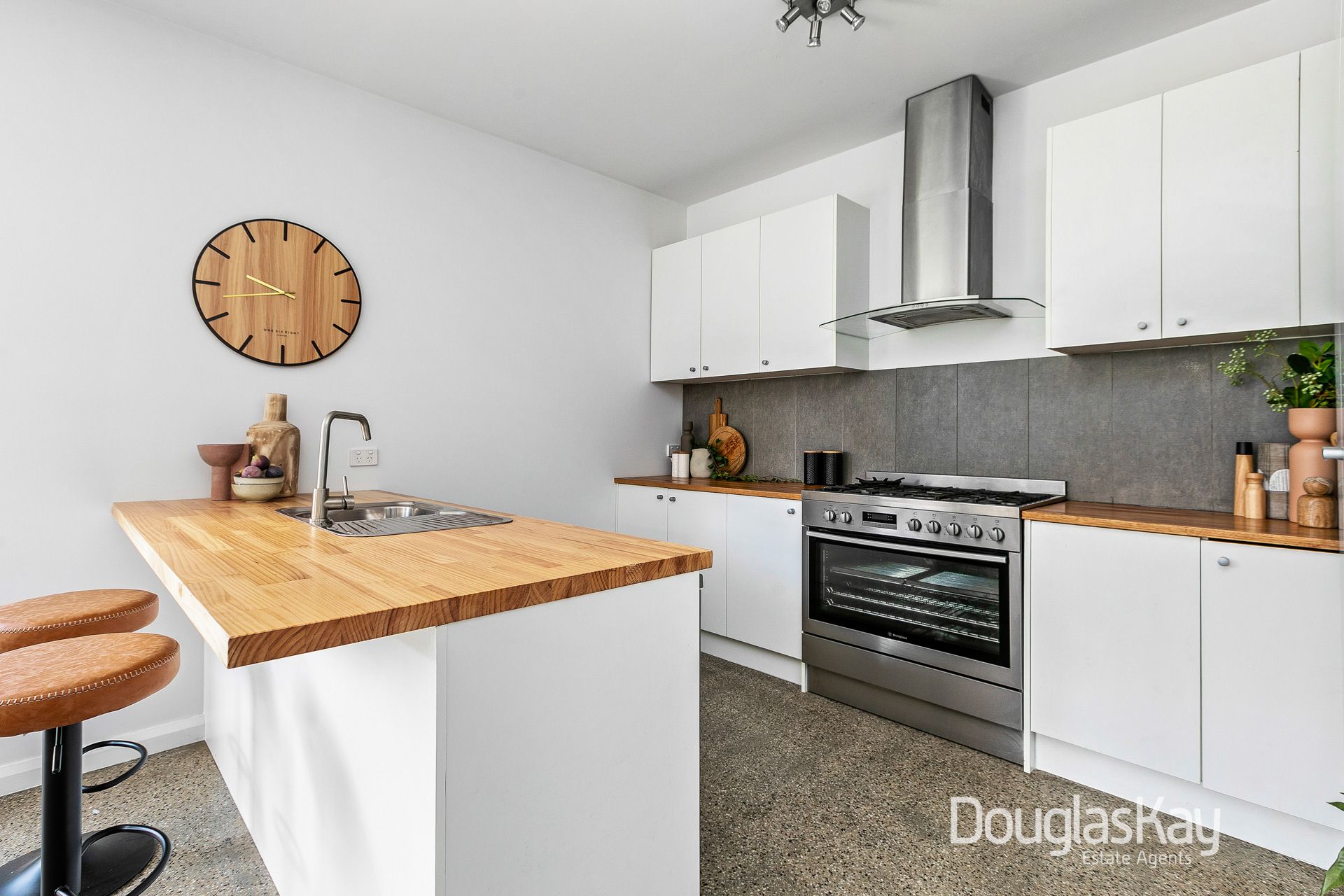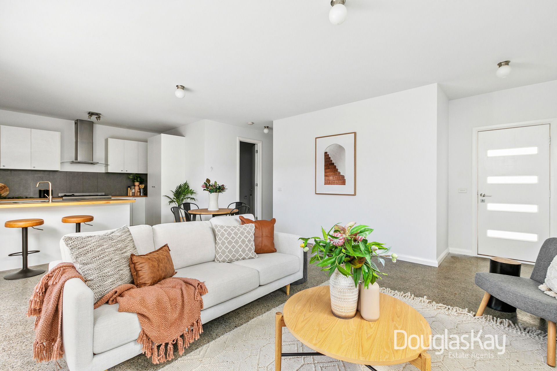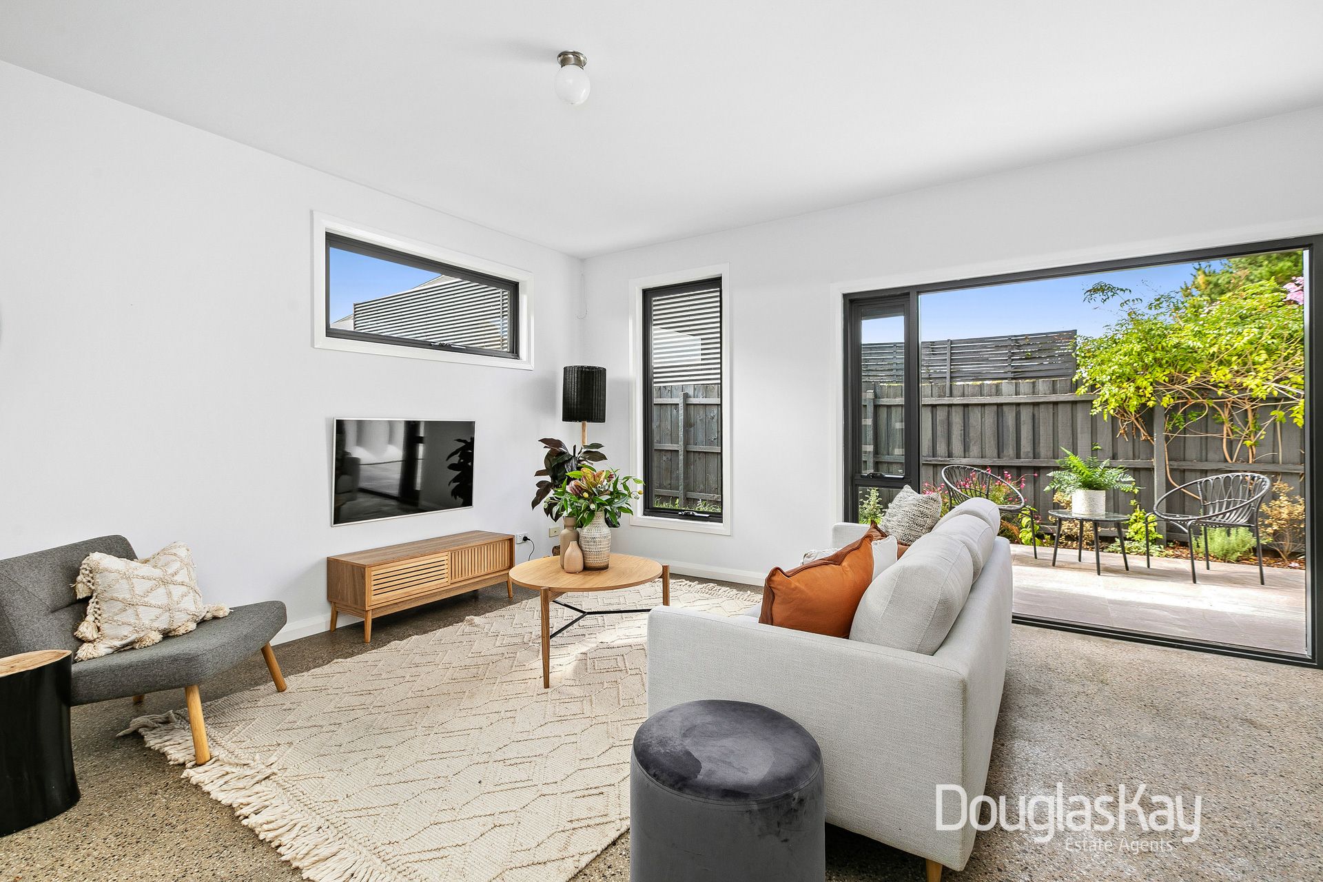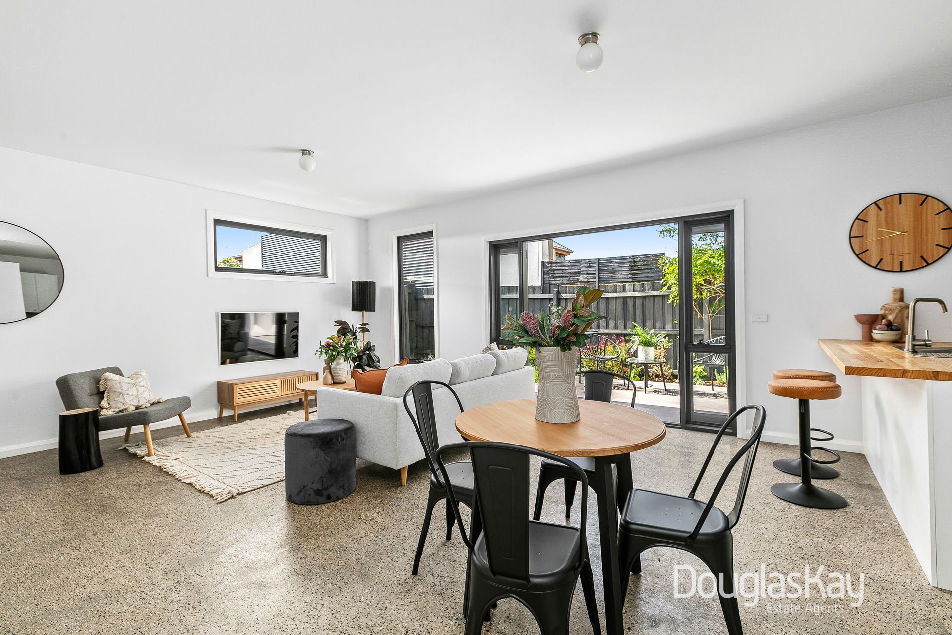 Impeccable presentation from beginning to end featuring polished aggregate concrete flooring, the home's illuminated interior comprises two double bedrooms with built in robes serviced by a spotless central bathroom room with stone-top vanity and laundry.