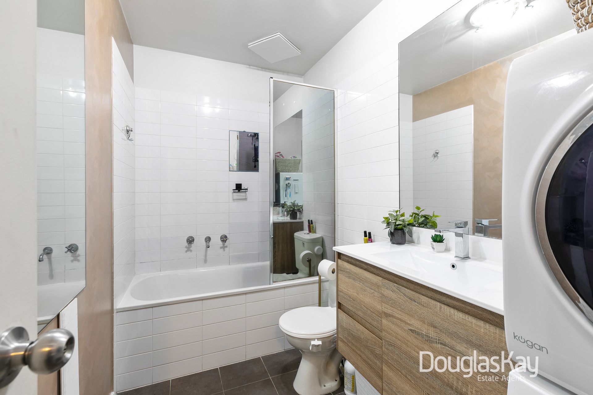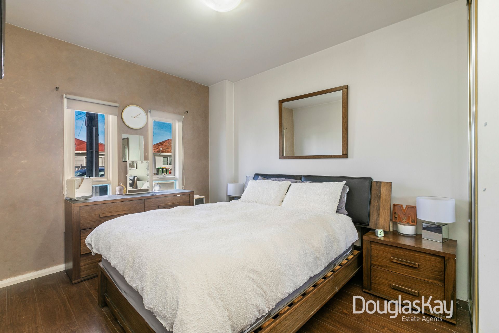 Two spacious bedrooms, one with a built-in robe, are serviced by a sparkling central bathroom with laundry facilities.