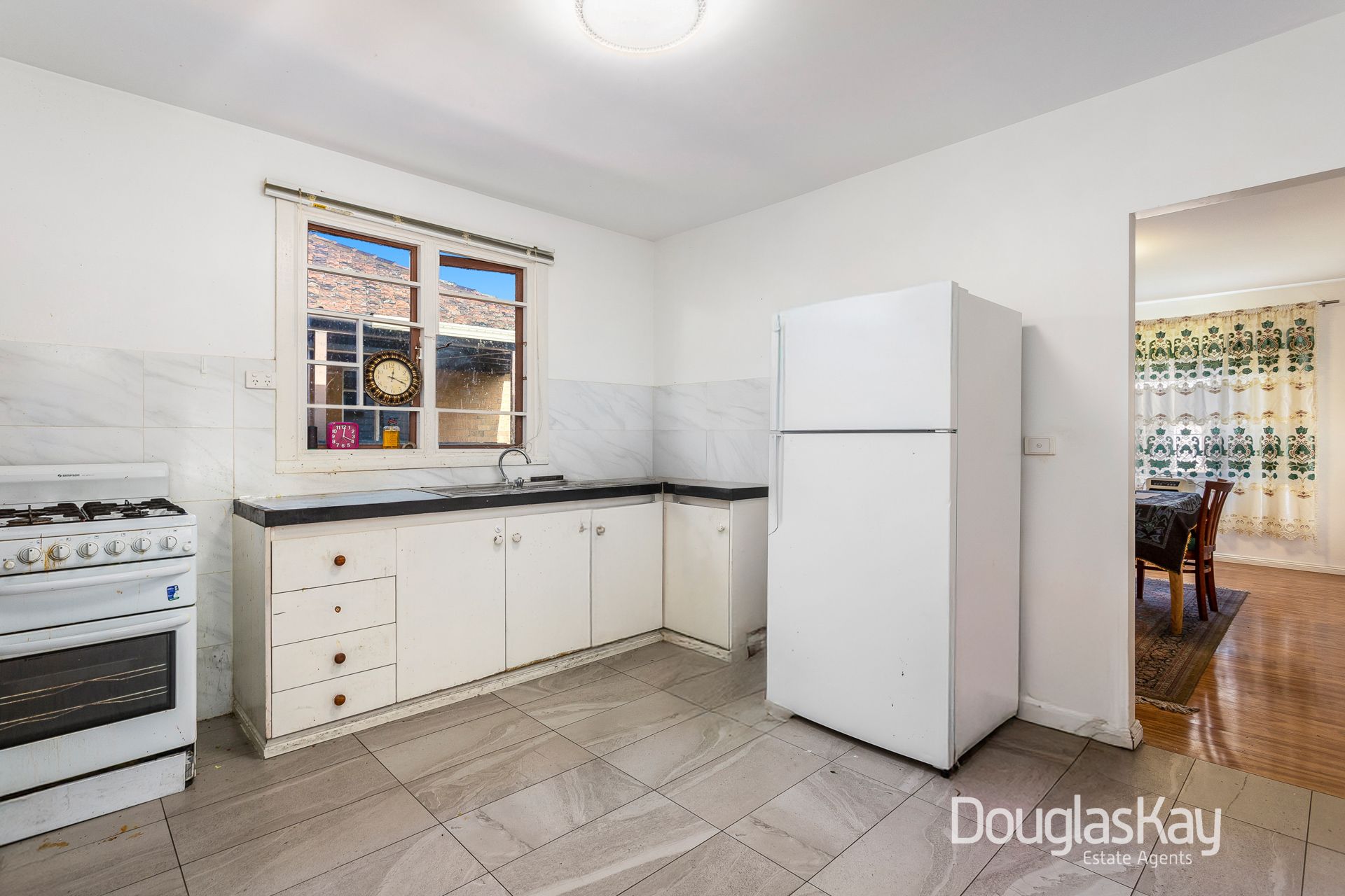 The original weatherboard residence features three bedrooms, a functional kitchen with adjoining meals area, separate dining room, generous lounge, central bathroom, laundry, and a separate toilet. Ample off-street parking is also available.