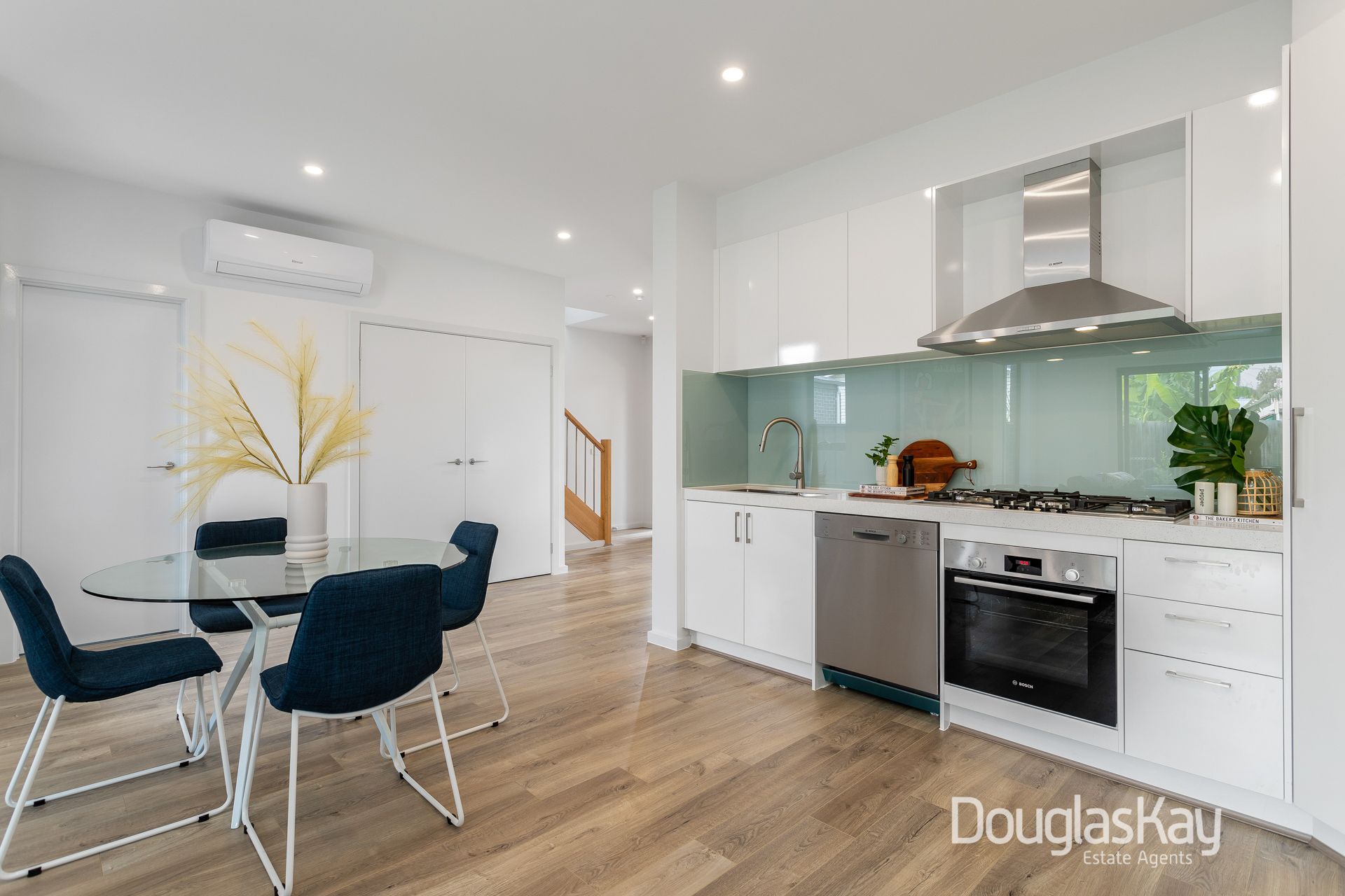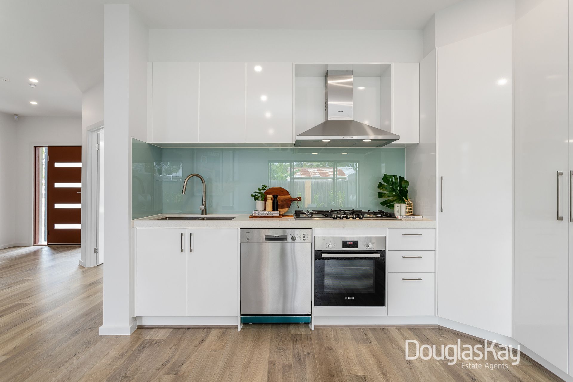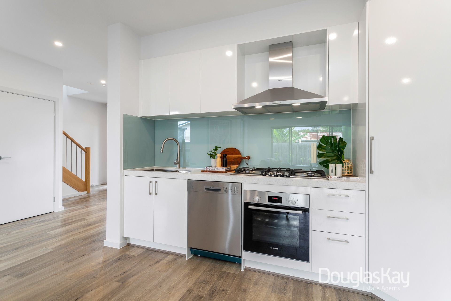 _brushed nickel fixtures, 900mm bosch stainless steel stove, dishwasher + rangehoods
