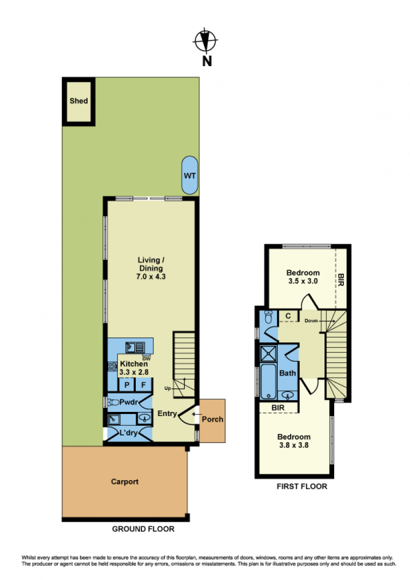 On the ground floor, a well-appointed open-plan kitchen, dining, and lounge area await, complemented by a laundry room, separate toilet, and a sprawling backyard oasis. Ascend to the first floor to discover two generously sized bedrooms with built-in robes, a central bathroom, and an additional separate toilet.