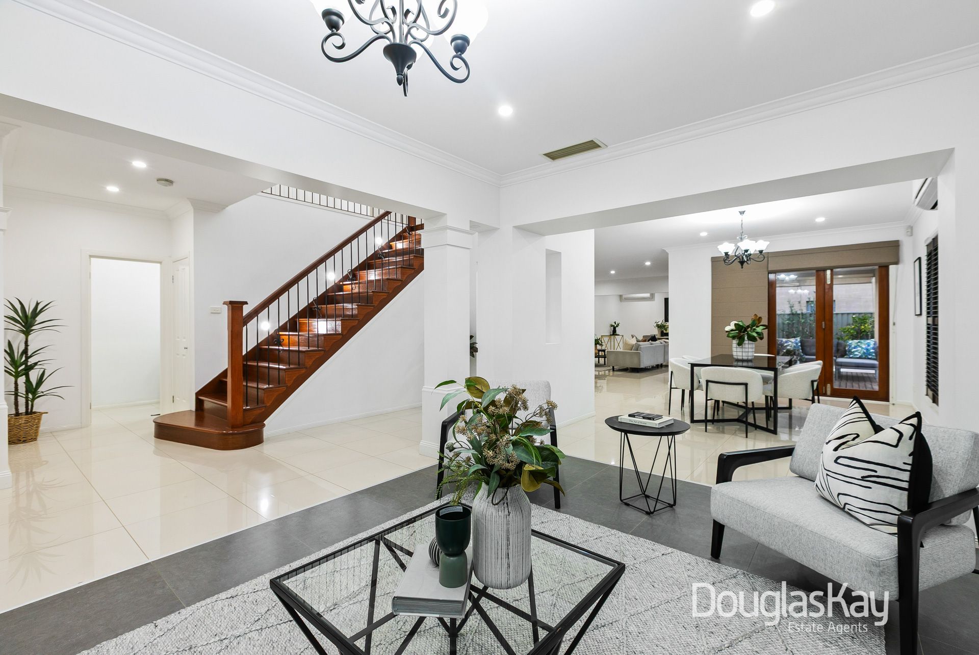 From the moment you step through the grand double doors, the home's generous proportions and architectural elegance are immediately apparent. A wide entry foyer introduces a spacious lounge that flows seamlessly to the formal dining area – ideal for hosting gatherings in style.