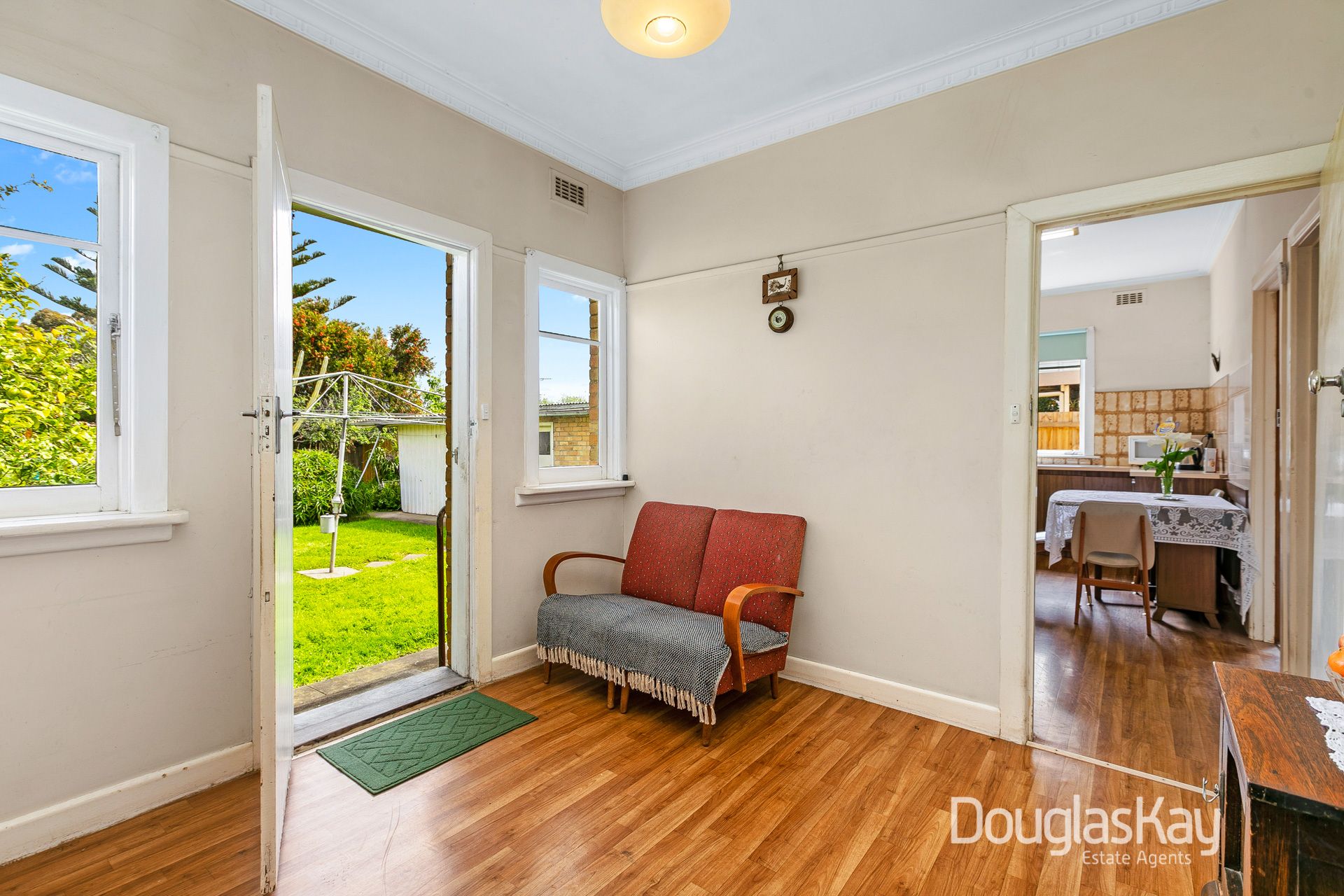Comprising 3 spacious bedrooms, central bathroom, huge bright living area facing north, formal dining, kitchen with meals, separate toilet, generous laundry and sunroom.