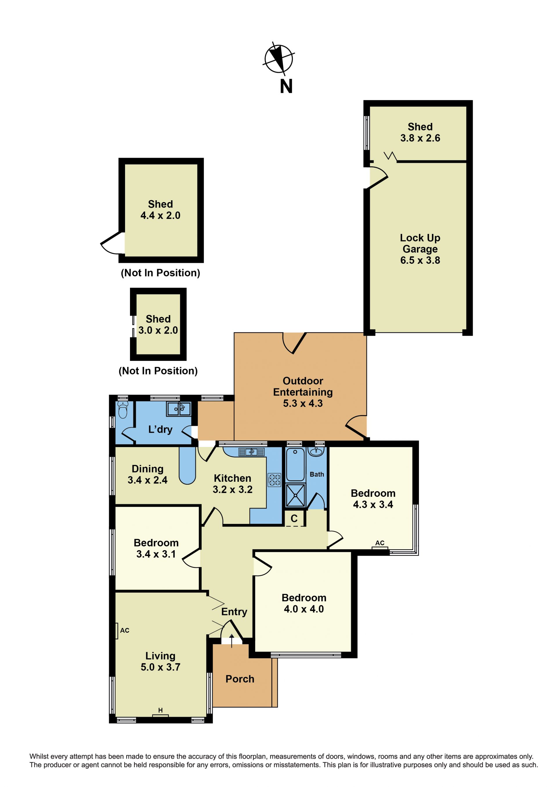 The home comprises three spacious bedrooms, a central bathroom, a well-appointed kitchen with adjoining meals, and a light-filled lounge. Hardwood floors lie beneath the carpet, while an inviting alfresco area overlooks manicured gardens filled with established fruit trees - the perfect space for relaxing or entertaining.