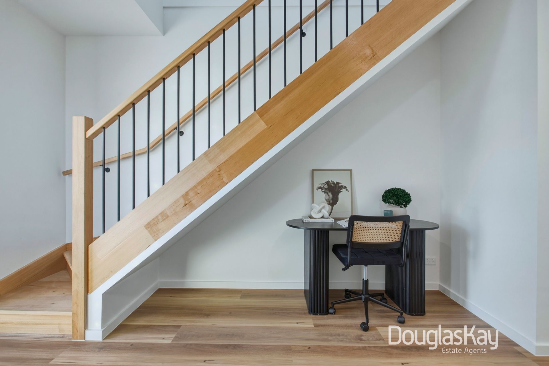 Additional highlights include two secure car spaces, stone benchtops to both the kitchen and bathrooms, and impressive 2.7m high ceilings that enhance the sense of space. The home features hybrid flooring throughout, designer door hardware, and double-glazed windows and doors for added comfort and efficiency. Blinds are fitted throughout, while the fully landscaped surrounds create a low-maintenance outdoor setting. A house alarm system and front entry intercom further enhance security and peace of mind.