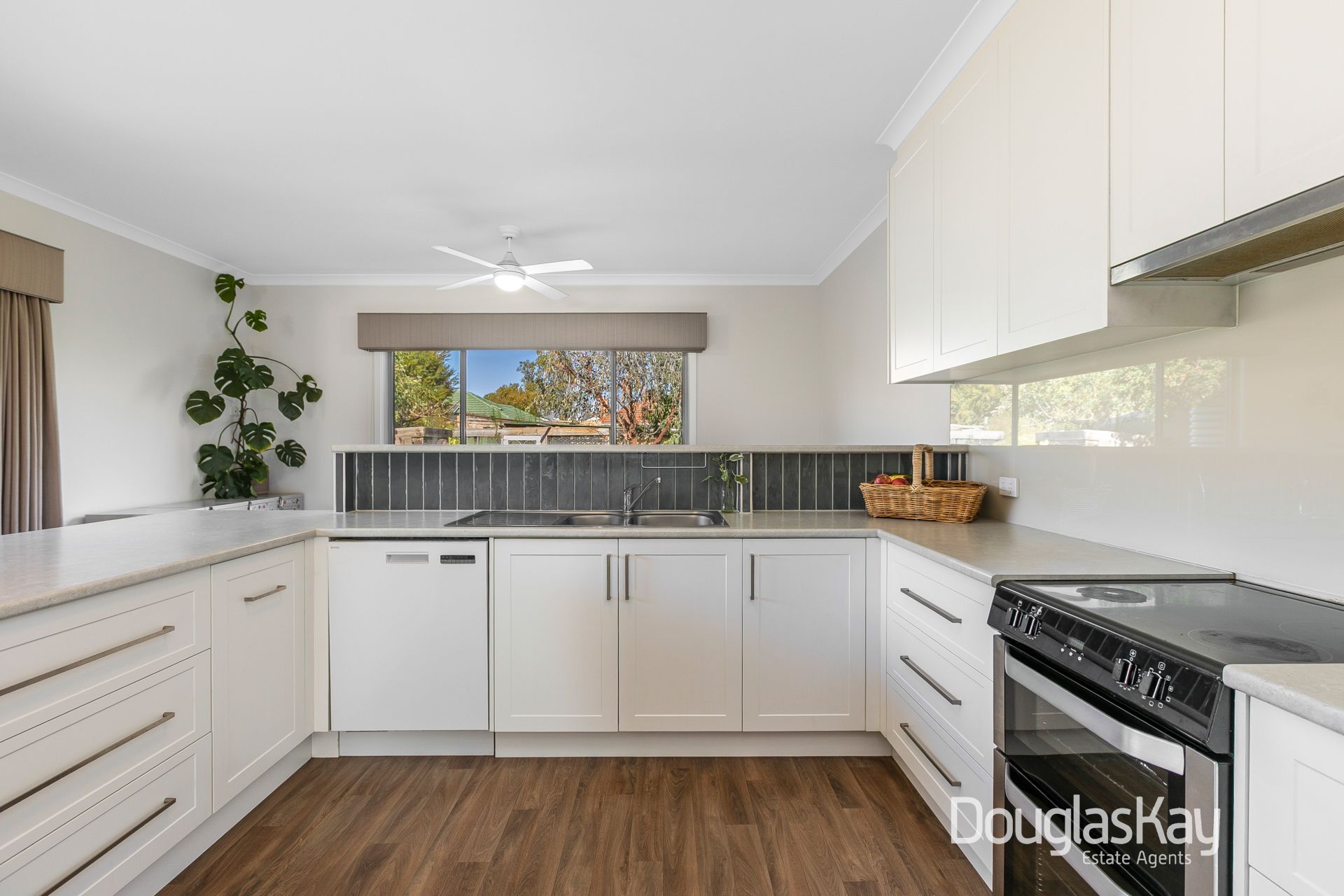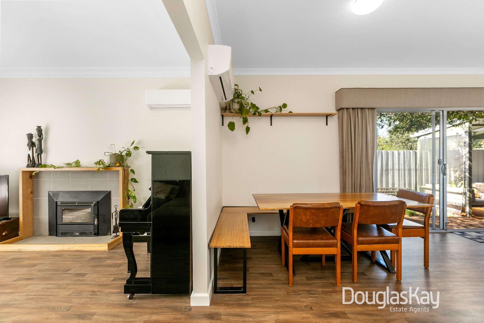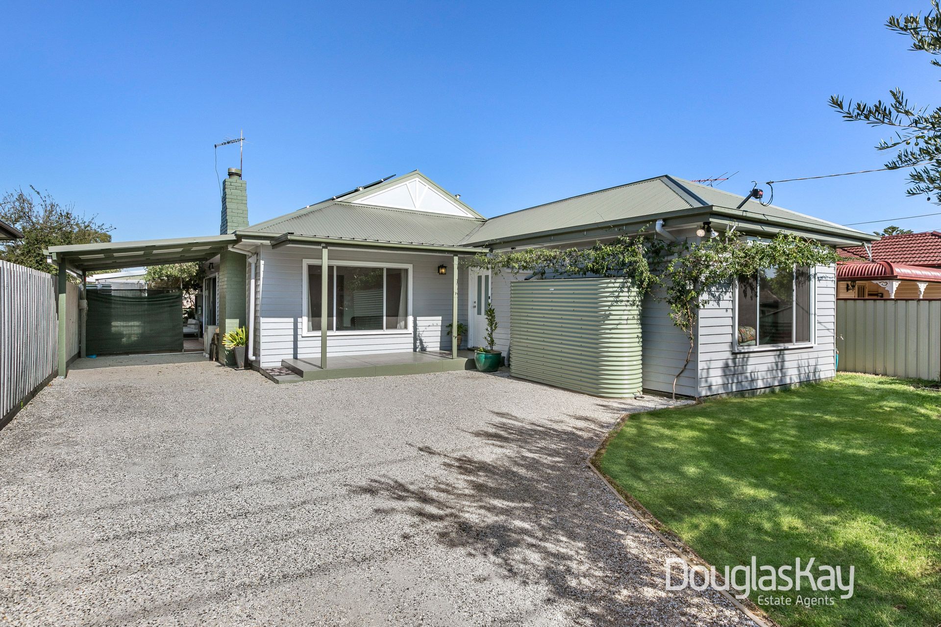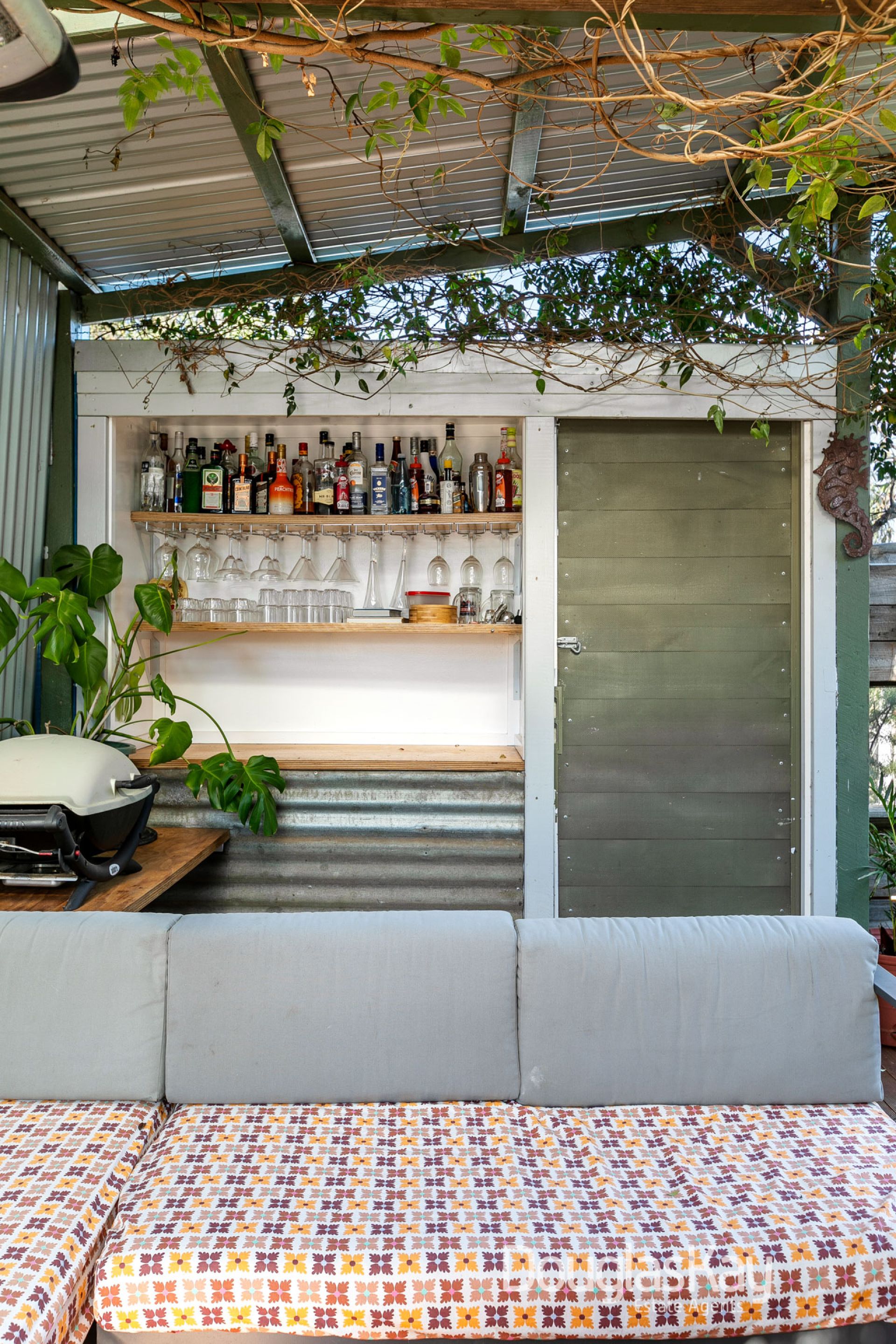 For outdoor entertainment, the undercover area includes a lounge, BBQ, TV, and cocktail bar, perfect for lazy Saturday afternoons. The deck wraps around the house and opens to the backyard. A picnic table offers warmth in the morning and protection from the western sunsets, making it perfect for outdoor dining. The washing line is discreetly located behind the shed, serviced by a path that also leads to a secure walk-in chicken coop, while established fruit trees surround the perimeter.