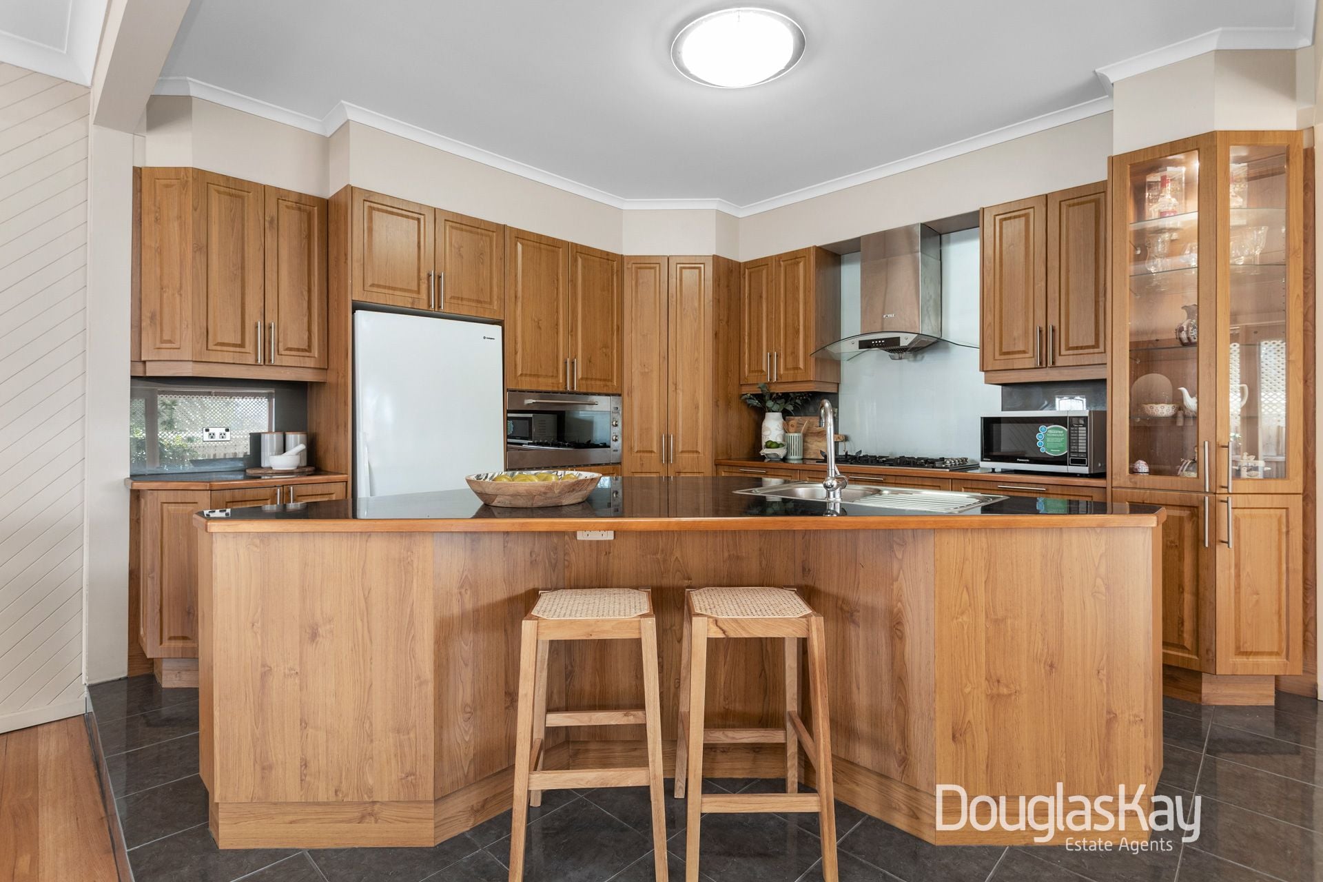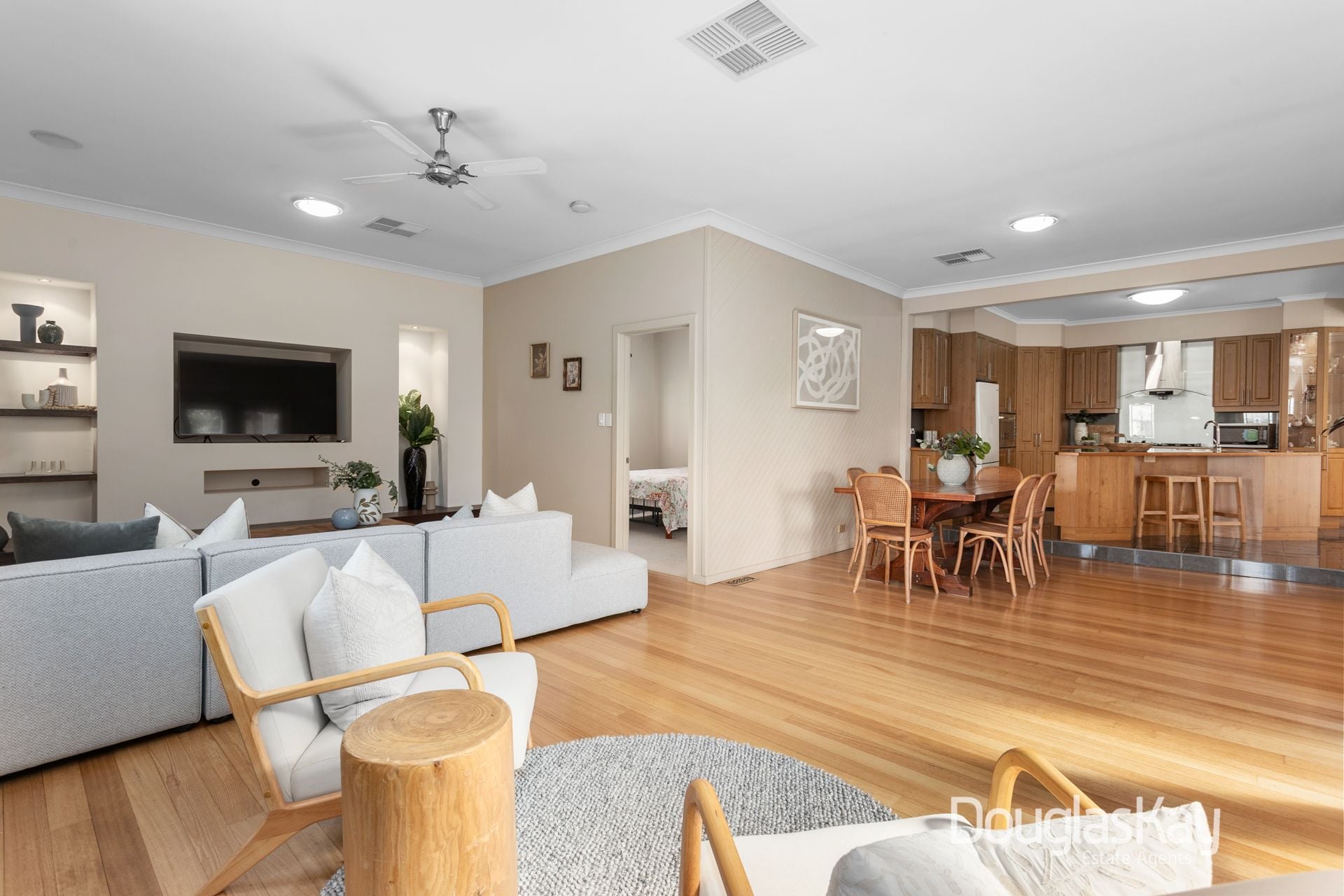 From the moment you step onto the welcoming front porch, you're greeted by warmth, character, and timeless appeal. Inside, a wide entry foyer opens into a light-filled living zone where double doors reveal a private alfresco area, creating the perfect indoor–outdoor connection for family gatherings or relaxed entertaining. At the center of the home, the stylish kitchen with stone benchtops and ample cabinetry flows into the open dining and family areas, providing both functionality and a sense of togetherness.