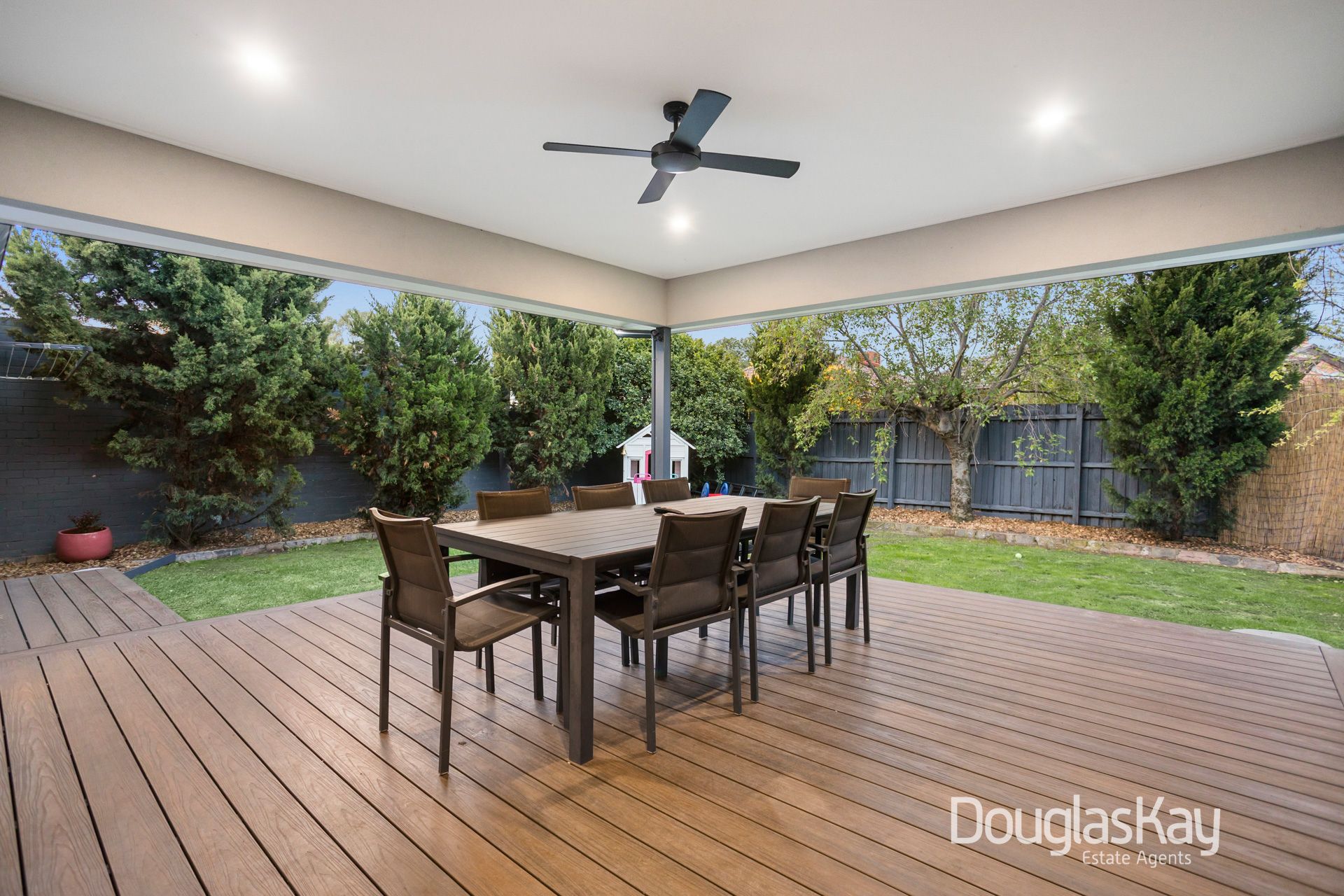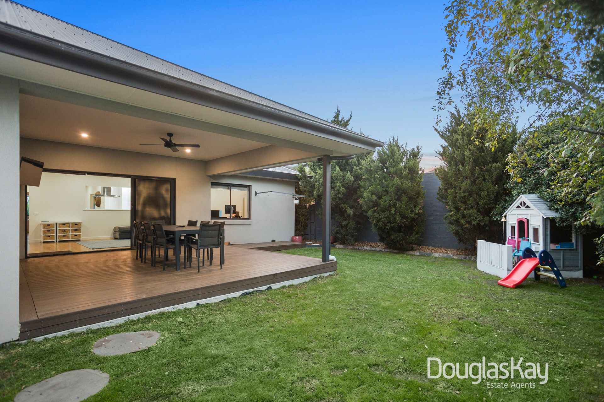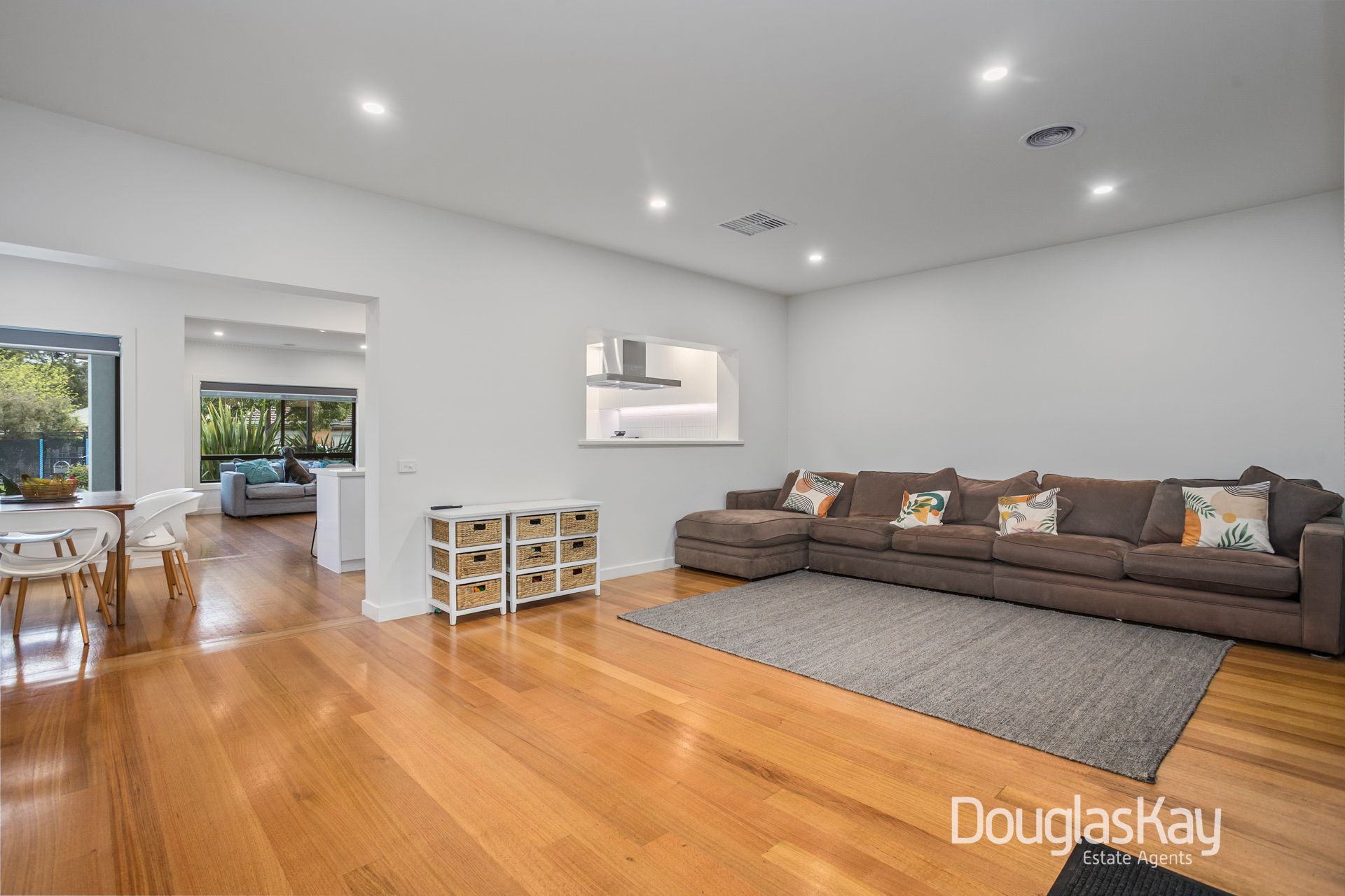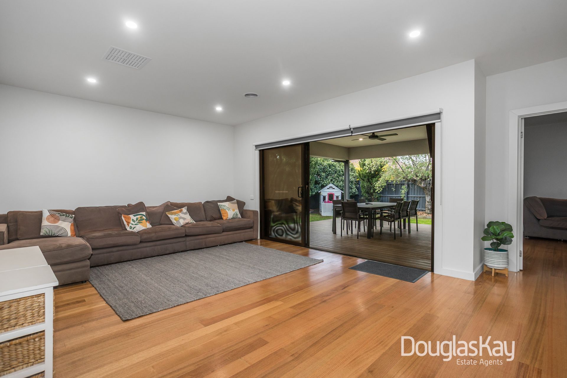 The master suite, part of the contemporary extension, is generously proportioned and flows through a walk-in robe to a stunning ensuite, offering abundant space and comfort. Perfect for entertaining, the home is surrounded by a low-maintenance landscaped garden that highlights a north-facing alfresco designed to capture all-day sun.