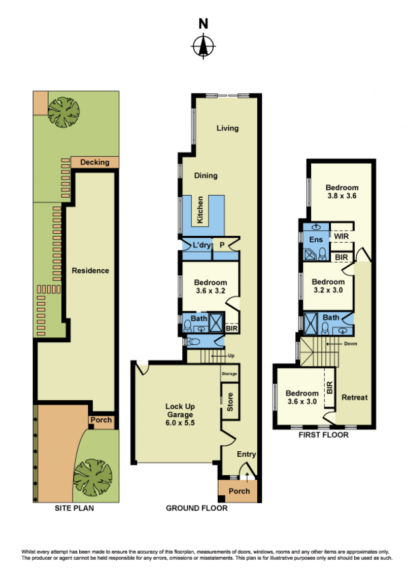 Upstairs offers a master bedroom with ensuite and retreat, plus two additional bedrooms serviced by a central bathroom.